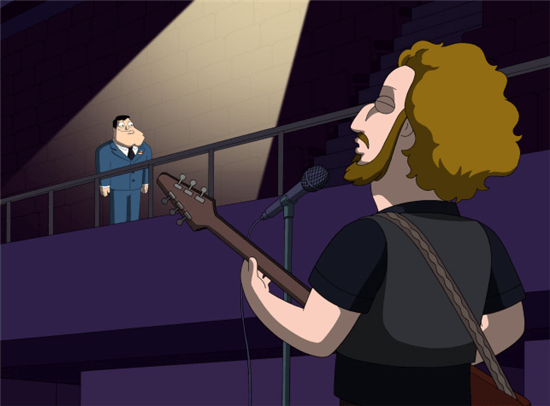 Honestly, it was an organic evolution.I was at Bonnaroo in the summer of 2008, watching MMJ play their guts out in the rain at 4 a.m. when the idea for the episode struck me.I pitched the idea to the guys the next day and thankfully they were on board.What makes My Morning Jacket a good fit for American Dad?