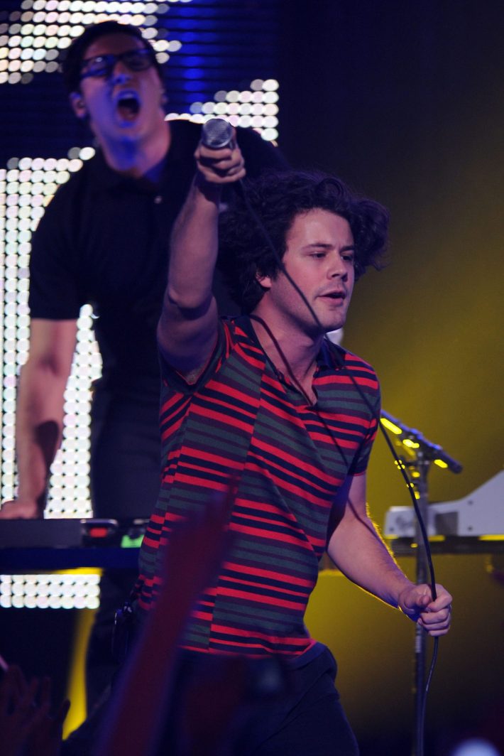 If you've only heard a portion of those acts, then the Woodies are doing their job! That said, if there is a culture having a moment, or at least having a moment in terms of pageviews, that is the culture that listens to bands like Passion Pit, Clipse, the Dead Weather, and Death Cab For Cutie, the same kids that will quote you Mr. Show or tell you about how Malvina Reynolds wrote the theme song for Weeds. It is the culture of you. So while the Woodies Awards were about being all things to all co-eds, the Woodies Awards Show would love for you personally to tune in. It'll air 12/4, but until then, some pics of the fun faces that walked the red carpet and performed at last night's ceremony, including the aforementoned bands, actors associated with the aforementioned shows, and college-rap mascot/clown Asher Roth. Enjoy!