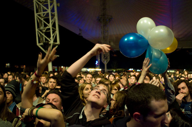 When the All Tomorrow's Parties festival first launched, the idea of canonizing an iconic album with a track-for-track live performance was still a novel concept. A decade later the album-recreation bit has become another salable gimmick for non-ATP acts trading on nostalgia to line their post-prime coffers, and even ATP has on occasion conferred the honor of total replication on LPs of questionably classic status. But still, as their hailed (if underattended) New York installments have proven time and again, All Tomorrow's Parties is the single most immersive, unique, and satisfying party corporate-sponsor-free money can buy. And to that we tip our caps, and were glad to send photographers Elena Morelli and Andrea DiCenzo to capture the proceedings at the Ten Years Of ATP blowout at the Butlins resort in Minehead. The lineup was typically spectacular, instead of Steve Albini schooling you in poker Kelley Deal was on hand to school you in crocheting, and Crispin Glover was on hand for some readings and film sessions. Magic. Congrats ATP. Enjoy the spread of photos,and if you're interested in a DVD memorializing all yesterday's parties -- 10 years worth via 50 minutes of full-length performances, a 40 page booklet, and etc. -- head to warpfilmstore.com.