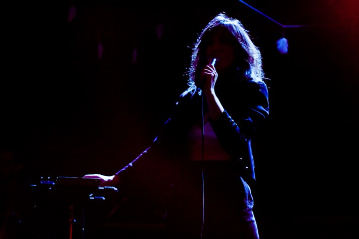 It was ladies night at the Highline Ballroom last night, the Chelsea club putting together a bill anchored by relatively longstanding, dreamy keyboard trio Au Revoir Simone, and a launching pad for singer-songwriter Alexa Wilding and the highly promising Class Actress -- a project taking its cues from '80s pop and the sound of its vintage synths, fronted by the memorable presence of Elizabeth Harper's vocals, signed to Chris Taylor's Terrible Records. As Kyle Dean Reinford's photos show, Au Revoir made it snow -- quite literally -- and as that lead pic captures, ARS invited Elizabeth and Alexa for an a cappella cover of Kylie's "Can't Get You Out Of My Head." We have some video of that moment, photos of the night via Kyle, and a take-away sample from Class Actress's excellent debut EP Journal Of Advocacy.