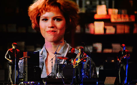 The Critics Choice Movie Awards, whatever that is, aired live on VH1 tonight. I could not tell you who won what, but it looked like a lot of Hollywood Movie Stars attended. James Cameron! The girl from Up In The Air! Nick Jonas & The Administration were the house band! Death Cab For Cutie were on hand too, delivering a bittersweet tribute to the late John Hughes via a cover of the most iconic movie tune of the '80s. Nick Harmer explains why: "[His] films were important waypoints for us to use as we navigated the uncertain waters of growing up and even now still give us so much perspective, insight and laughter about those uncomfortable years. We honor him and will continue to celebrate him with our music and through his films for years to come." It is not easy to cover this 25-year-old Simple Minds song. Even Billy Idol's version was meh and it was written for him.
