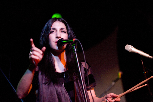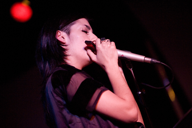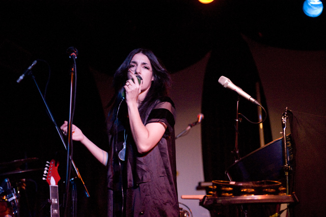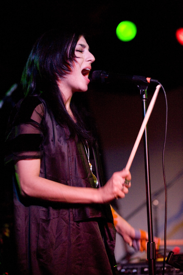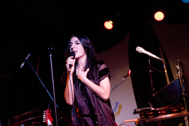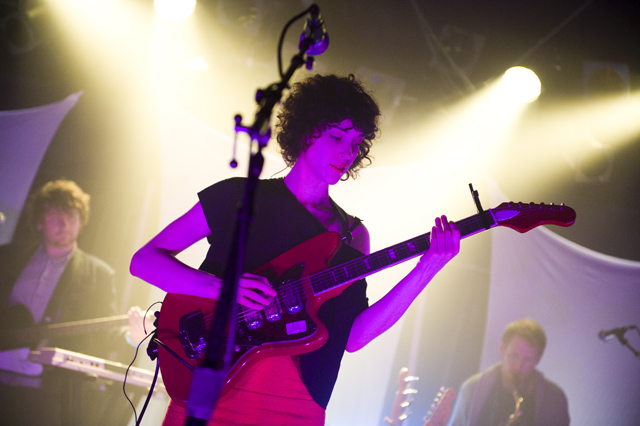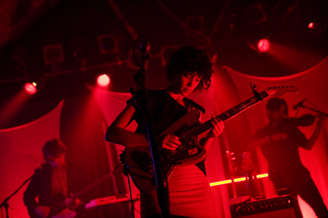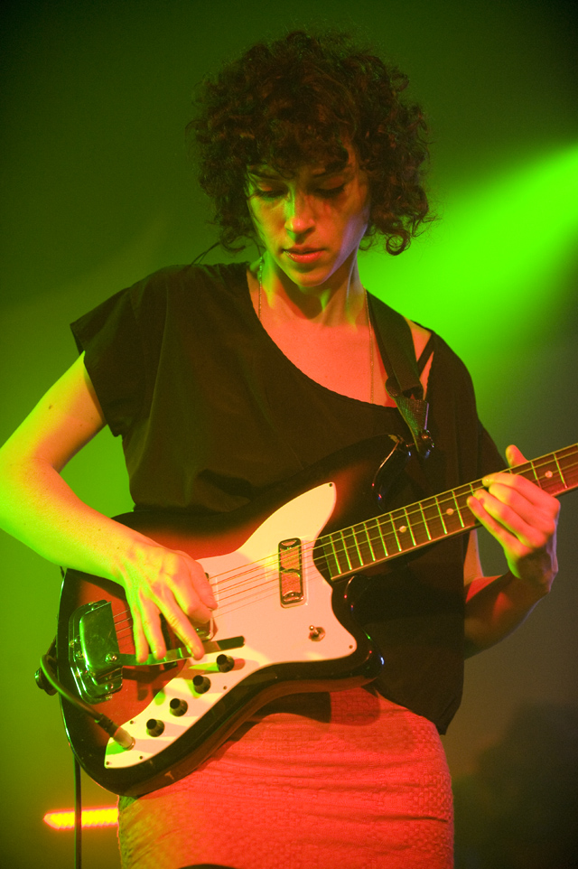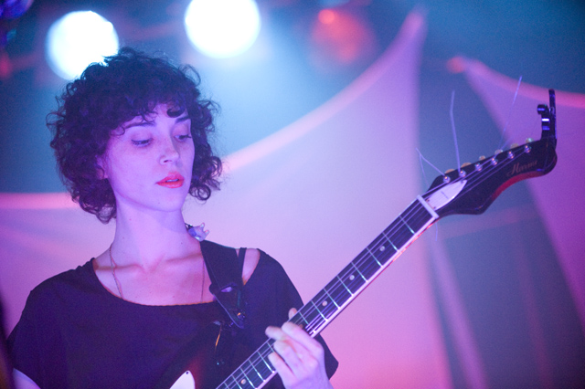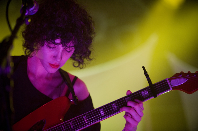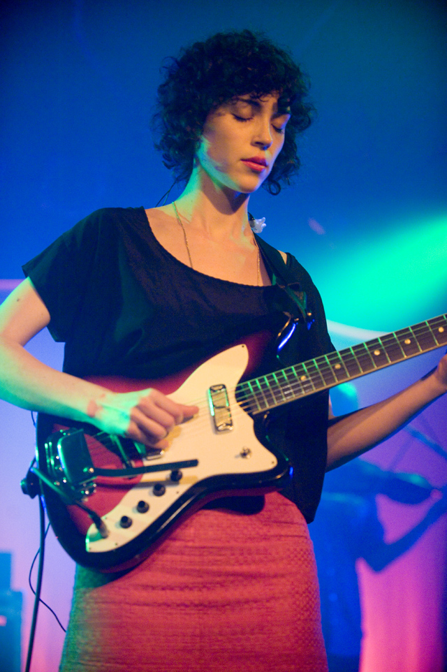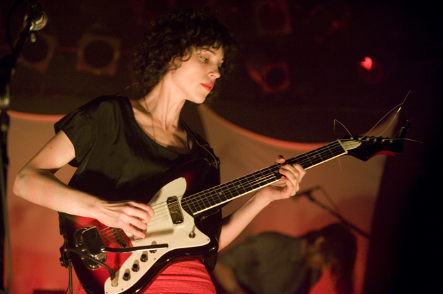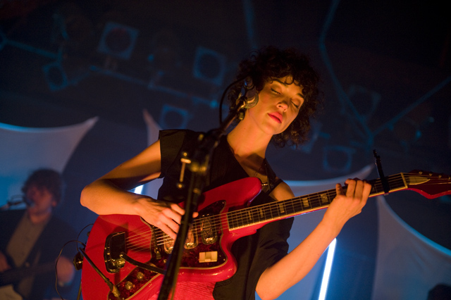 Annie did some L.A.-area duty last night, stopping into KCRW for a Morning Becomes Eclectic session before hitting the Belly Up for a headlining set with support from Swedish steel-drummers Wildbirds & Peacedrums. Andrew Youssef caught the show at Solana Beach and helpfully reports that she's working with a Z Vex fuzz factory. For the guitar nerds. Pass through his shots, and have a pass at her performance of "The Strangers" from that KCRW session right here: