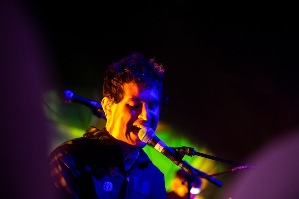 Which is what blissed-out acid casualties used to say about the Grateful Dead -- an apt parallel. The show began with an amorphous sonic tide, like dropping into the middle of the Dead's traditional second-set drums/space freakout, which after several minutes coalesced into the rainstick yoga trance of "Also Frightened" as official first song. Like the Dead, AnCo didn't distinctly start or stop songs as much as they slid into and out of them; "Wide Eyed" sort of materialized from "Applesauce," the latter featuring recently reunited guitarist/multi-instrumentalist Deakin on lead yawps. A balding goateed guy next to me held up a Zoom digital recorder the entire show, bootlegging, reminiscent of the Dead's die-hard taper section. The concert was scientifically designed to deliver a cathartic psychedelic experience, and even sober as a straightedge you were in for it. (On that front, this almost-sold-out Tuesday night crowd was certainly not taking the acid test.)