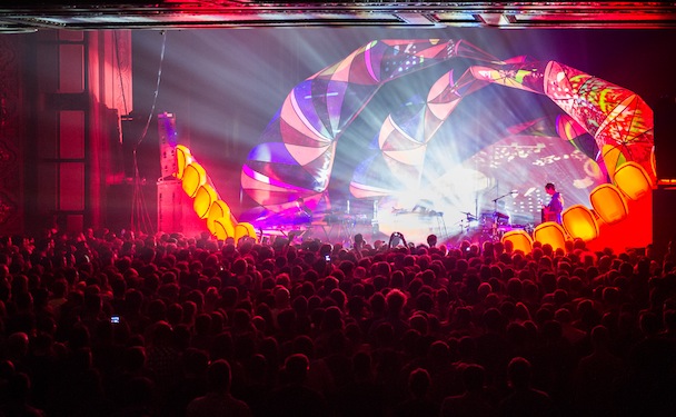 The Moment put into perspective the nature of the entire 100-minute show, Animal Collective's first in Seattle since 2007 (not to mention the first, period, of their just-kicked-off tour), set within the regally vaulted Paramount Theatre. Songs were more suggestions than statements, the performance a lava-lamp swirl of shifting sensations: anxiety, ecstasy, incongruity, release. The desire for straight talk, for clarity -- a natural, human desire -- was never sated. Instead the music was stubbornly diffuse, alien: murky and throbbing and utterly synthesized. And the crowd surrendered. There would be no ride-the-guitar solos tonight, no snippets of wisdom discernible in the lyrics. Or rather wisdom came in the realization that there is nothing in the world quite like an Animal Collective concert.
