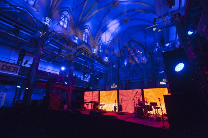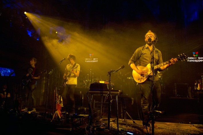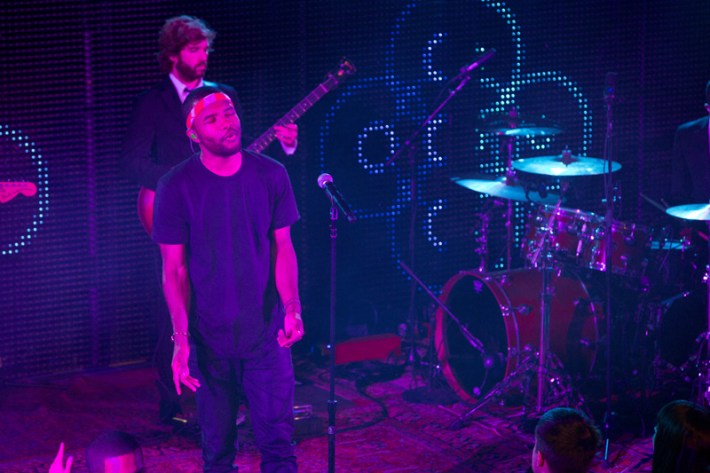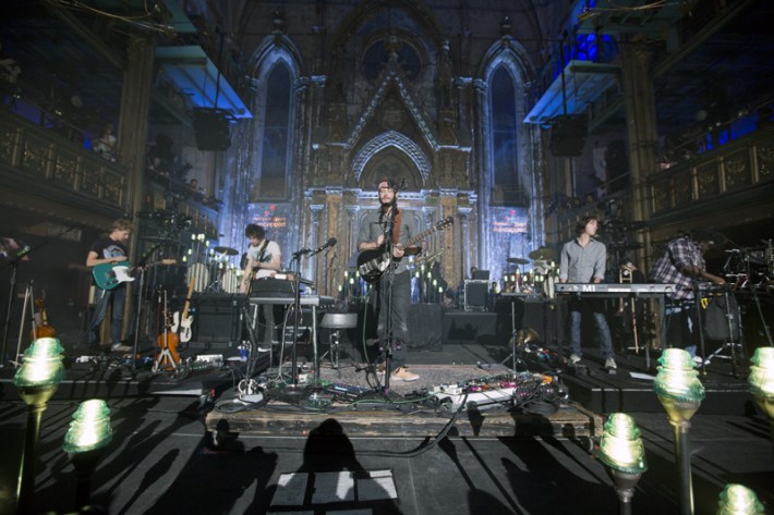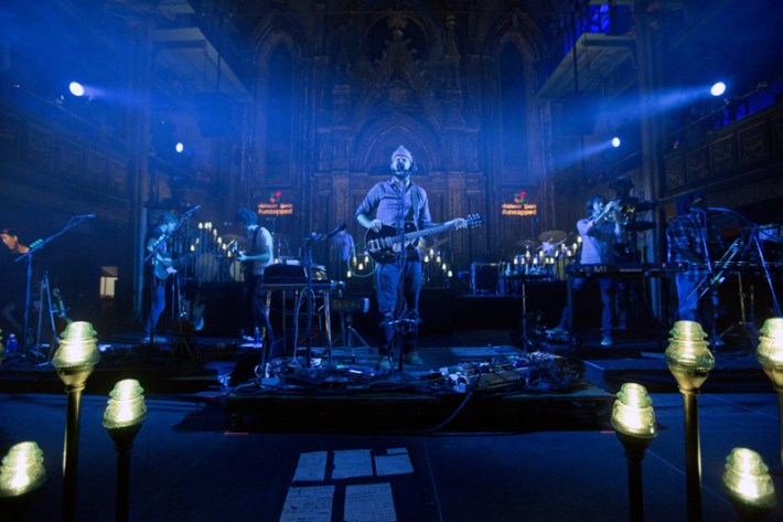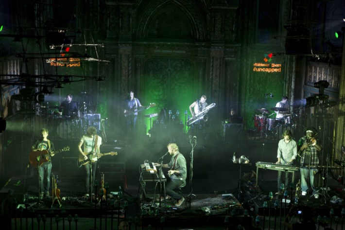 Last night, Bon Iver and Frank Ocean performed at Manhattan's gorgeous Angel Orensanz Center. It was the final installment in Vitaminwater and the FADER's nine-city Uncapped series. The event was free -- those interested in attending were able to RSVP online -- and thus, as you might expect, the place was packed. Frank Ocean took the stage first; he and his excellent band delivered another amazing perfromance (his setlist is included in the photo gallery). Bon Iver followed. The band, consisting of frontman Justin Vernon and nine multi-instrumentalists, was powerful yet capable of delicate moments of sublime beauty. The crowd was so moved that even after Bon Iver concluded their set and the applause stopped, fans were still singing the refrain from the last song, and continued to do so for at least another two minutes. Photographer Greg Cristman was on hand to capture the event; check out his shots in the gallery.