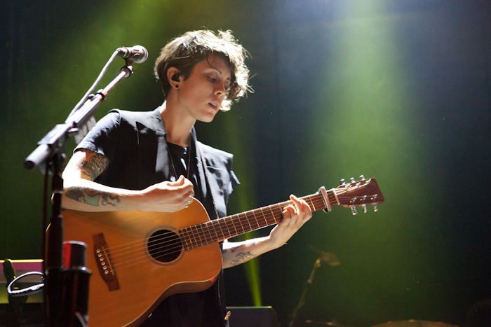 Canadian sisters Tegan and Sara played to a sold out crowd at New York's Bowery Ballroom on Monday night. This show was their first concert back in the US since supporting the Killers on their UK tour, and the girls made reference to the nice intimate crowd in New York after playing in big arenas. The event sold out immediately, and die-hard fans waited from the early afternoon to pack themselves into the venue. The concert was a mix of old and new songs.They played their hit classics including "Back In Your Head," "Where Does The Good Go," and "Walking With A Ghost." But the sisters have been touring to promote their upcoming album Heartthrob (to be released January 29th), and Tegan thanked the crowd for their support as they've experimented with different styles of music (see the full-on synth-pop of new single "Closer"). The Quins visit Letterman this Tuesday, and tour the US with the Killers. Dates here: