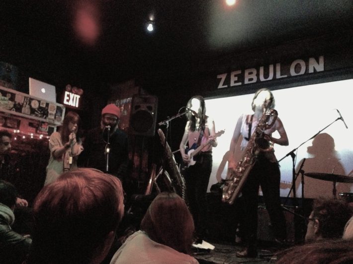 Artists came here to learn the ropes, to stretch out, or to perform intimately in later more established stages of their career. Jazz mixed with afrobeat mixed with spoken word mixed with polyglot global dance beats, noise, and rock. Last night's roster was a bank of relative all-stars, culled from the ranks of those who developed themselves over the years at Zebulon.