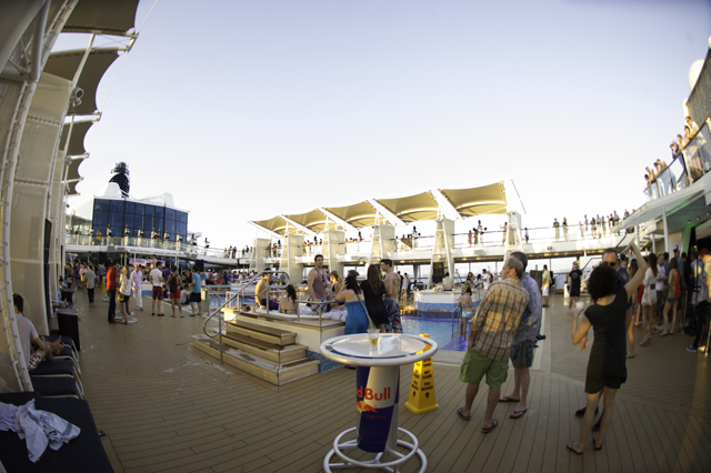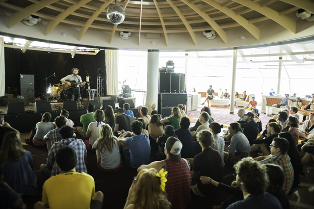 Day 3: Arriving in Jamaica, folks had a good portion of the day to explore the island. I opted to catch up on sleep. Making my way down to the Desert Crew lecture which featured the top brass of Goldenvoice as they discussed the inner workings of Coachella. One of the noteworthy moments was the revelation that a new tent would make its debut at the next Coachella. They also revealed how Daft Punk invested most of their money from Coachella into buying their huge LCD pyramid stage setup and still are the most requested act every year. The evening festivities were another marathon of good acts with the Gaslamp Killer warming up the poolside with his hyper-kinetic beats and free-flowing hair. !!! got everyone grooving in the Sky Lounge with their dance strewn electro-rock. Yeasayer were the headliners of the evening and performed with a Purell dispenser as a prop as they whipped through material from Fragrant World and Odd Blood. Capping the night were scintillating sets from Father John Misty and Warpaint, as well as the usual chaos of the Black Lips.