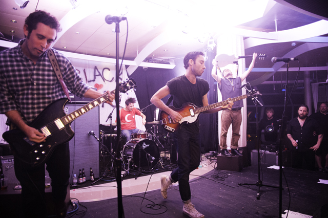 Day 4: The last day on the boat and seasickness started to grasp some unlucky folks. The cruise to the Bahamas glided along at a 6 knot pace, which is fairly benign. The speed to Jamaica was a top speed of 24 knots which meant you felt quite a bit of swaying. Tons of people showed up for bingo with Grimes doing the number-calling. Father John Misty captivated everyone with a shimmery acoustic set, debuting a few new songs to which he kindly asked the audience not to record. Warpaint intoxicated everyone again with a hypnotic set, which gave way to the metal-tinged rave of Sleigh Bells. Black Lips were surprisingly still in good shape for their second go as they rambled through a healthy set of songs. Drawing one of the larger audiences in the main theater was the mash up king Girl Talk who had the ship rocking back and forth into the early morning.