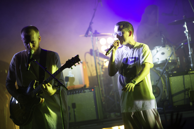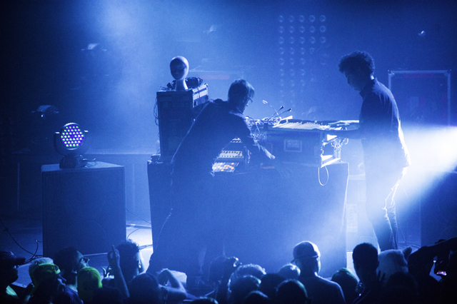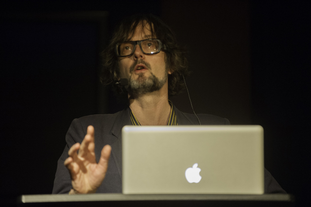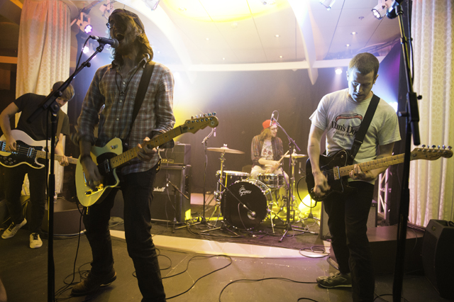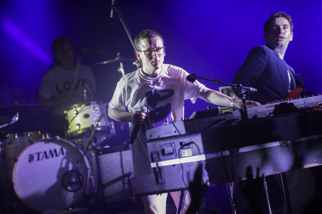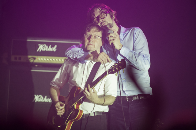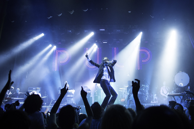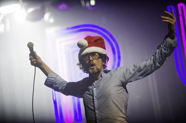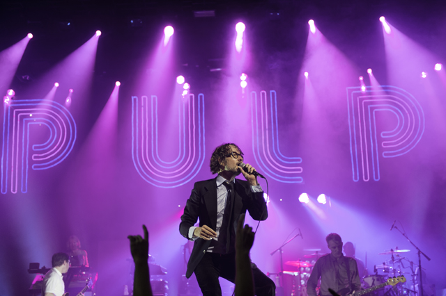 Day 2: Jarvis Cocker woke me in the morning via an announcement over the intercom stating he would be holding a lecture about songwriting along with appearances by Bruce Lee, Louie Louie, and a rabbit in dungarees. Shuffling down to the lecture room, Cocker was wearing a headset microphone and would explain how song lyrics can mean everything ("Sorted For E's & Wizz") and nothing ("Louie Louie"). The stakes became even higher as he gave away a shirt and two suits he wore as prizes to his trivia game, where you had to identify bands like Arctic Monkeys and Kasabian through pictures. Next on the agenda was a cozy wine tasting with James Murphy and about 50 people. Grimes had one of the larger crowds for her set backed by her in-your-face dancers. A DJ set by the Rapture coincided with another furious round of Cloud Nothings. Hot Chip rocked the boat with their headlining set that included a cover of Kraftwerk "Neon Lights" and a spot-on cover of Prince's "1999."