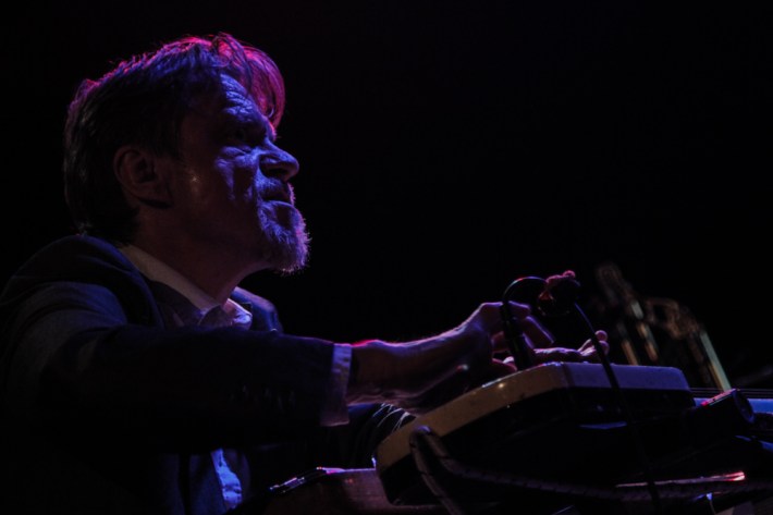 Swans played a sold out show last night at Brooklyn's Music Hall Of Williamsburg, making up for a performance postponed due to Hurricane Sandy. Michael Gira and co. played a two hour set following a short one from opener Devendra Banhart. Kenny Sun was there to capture it.