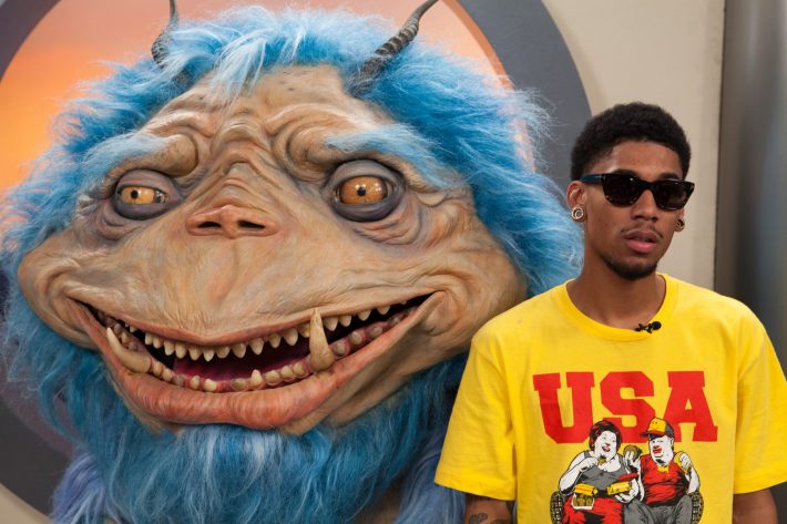Stereogum is excited and a little scared to announce that we'll be the official media partners for The Gorburger Show's second season. This means we'll have every episode up on the site before you can watch it anywhere else. In case you're not aware, Gorburger is the furry, blue alien who has taken over a Japanese news network, using the studio to host a talk show featuring interviews with indie rock bands. He also eats musicians, so it makes for some compelling Q&A. The show's produced by Funny or Die and The Warner Sound, and its second season will feature folks like Flea, Grouplove, MellowHype, Wayne Coyne, Jack Black, Bleached, Henry Rollins, King Tuff, and Eagles Of Death Metal. Also: Carson Daly. Will any of them be eaten by Gorburger? You'll have to check back starting 3/11 to find out. In the meantime, watch the premiere of the second season trailer, and catch up on some of the insatiable blood lust from the first season, below: