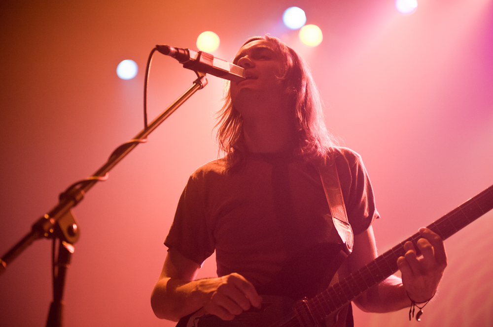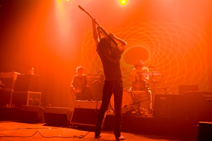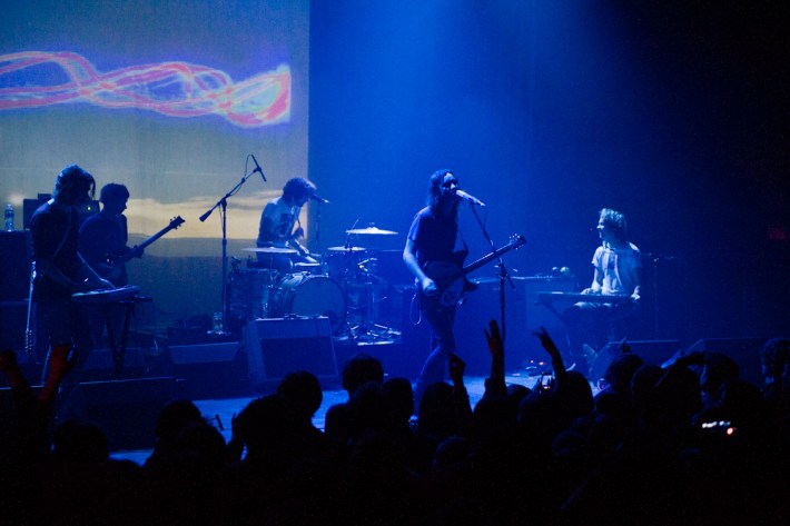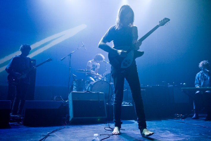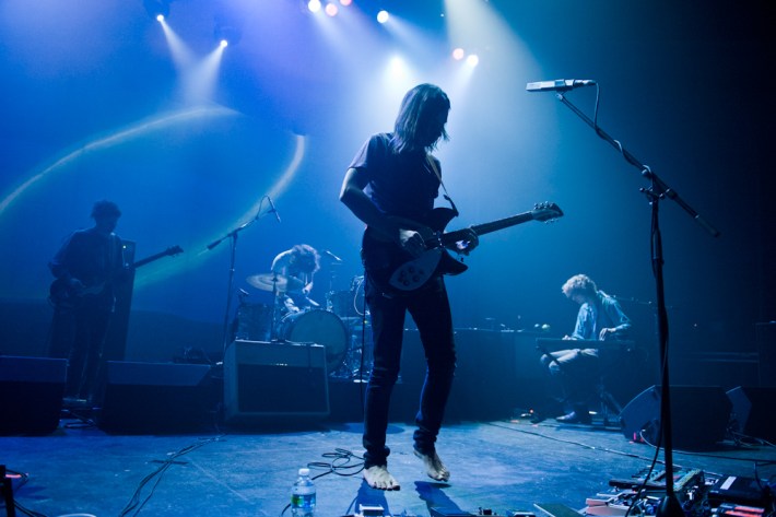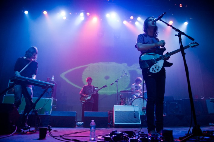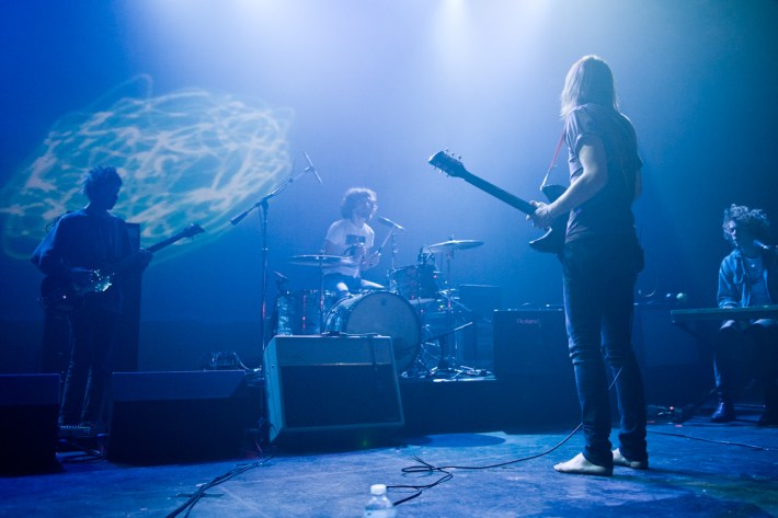 Last night, Tame Impala and openers the Growl played to a sold out crowd at the Vic in Chicago. Tame Impala balanced their setlist with tracks from both Lonerism and Innerspeaker, including "Music To Walk Home By," "Elephant," and "Mind Mischief," as well as extended versions of "Solitude Is Bliss" and "Endors Toi." We sent Max Herman to shoot the action.