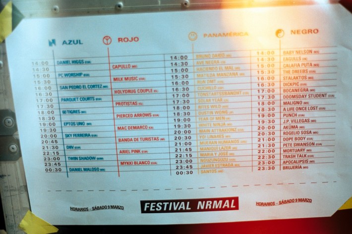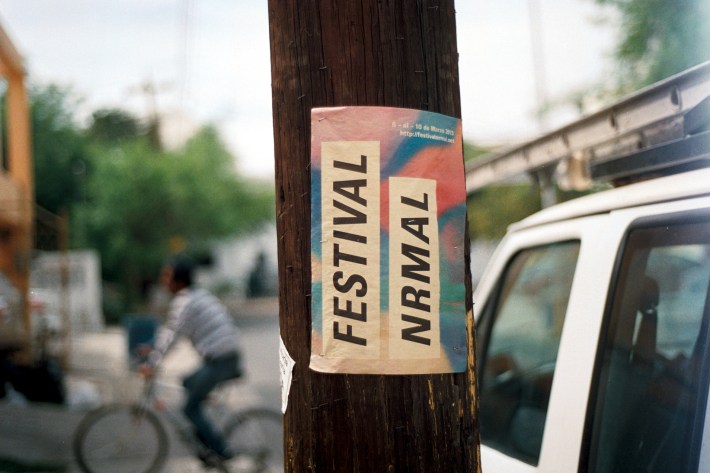 Todd is an organizer within Brooklyn’s underground arts community, with a hand in the show spaces 285 Kent and Market Hotel, and the all-ages show listing zine Showpaper, amongst other projects. He also curates the U.S. bands for Festival Nrmal, which is about to happen in Monterrey, and is the reason I am in town. Nrmal is a music festival in its fourth year, bringing together artists from across Latin America, the U.S., and beyond. The main event is an all-day outdoor festival at a big park on Saturday, March 9, surrounded by a week of smaller-scale nighttime showcases, which start tonight.