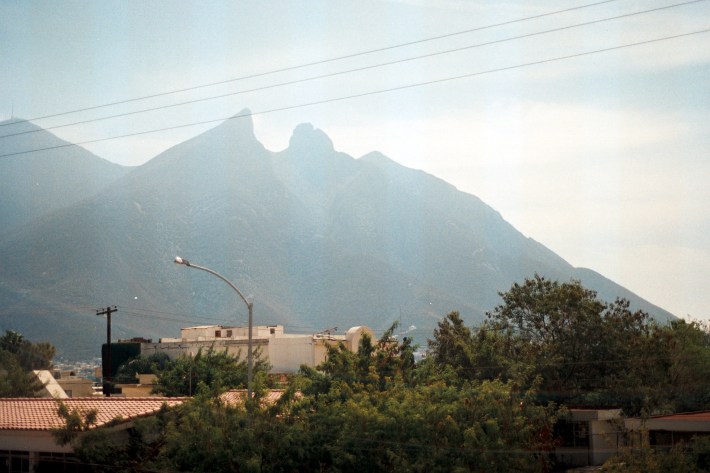 Later, I’m back in Todd’s car, with Zoe (the 285 Kent staffer) and Ali (my roommate, and a Noisey writer). Todd is taking us to one of his favorite spots in Monterrey, a breathtaking canyon called La Huasteca. We drive 20 minutes away from the city, and suddenly we are surrounded by mountains marked by gradients of gray that look like paintings. “All of San Pedro is on the other side of that mountain,” says Todd, pointing into the distance. Our drive through rock roads is bumpy, but the canyon is mostly empty, serene and quiet. At one point a woman runs by our car surrounded by her four dogs. Some donkeys pass by. Later we spot an elderly man wearing a straw hat, riding a horse. There is also some construction going on in some places, where a paved road is being constructed. We stop the car to shout and hear the echoes of our voices, snap photos, and pick wildflowers. “The Nrmal office is about three miles that way,” Todd says, pointing towards the mountains.