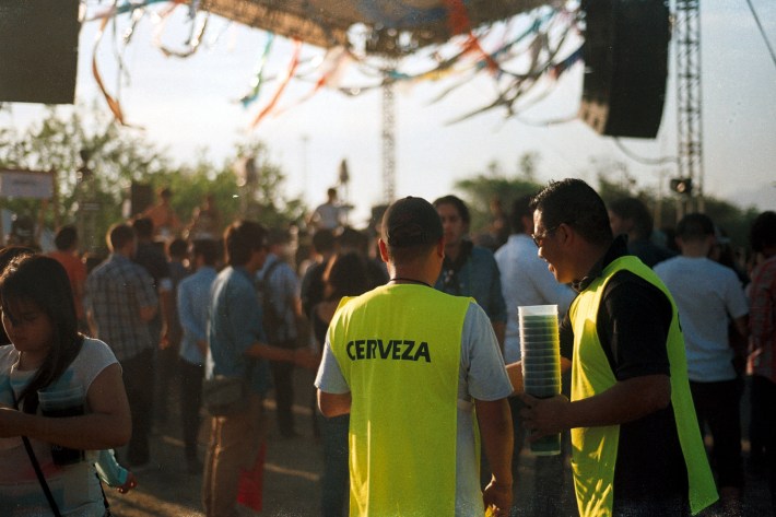 Todd tells us about the city’s harsh income distribution.We drive past some narrow looking streets; he points out the Spanish colonial district, the part of town where some buildings are still made of stones laid out by Spaniards when they settled here. Now, though, there are many nightclubs in that district, and in recent years it was also the site of massive gang violence where bouncers were murdered. Minutes later, we drive over a bridge and down another highway, and now we’re in San Pedro Garza García, one of the richest cities in Latin America, like “the Beverly Hill of Monterrey.” It’s also where the Festival Nrmal offices are located. Soon we’re surrounded by joggers, a Lamborghini dealership, the Mexican headquarters of GE, a Vera Wang store, to name just a few of the dozens of symbols of wealth we’re bombarded with. The economic inequality Todd spoke of is obvious. It surfaces in the music world, too. Festival Nrmal is a rarity in Mexico for costing only $25. Vive Latino, for example, a festival happening next week in Mexico City costs the equivalent of $150. In general, concerts in Mexico tend to be more expensive than they are in the US, indie rock included. Todd says it’s a sign of the classist elitism that pervades indie culture here – and it’s no different in the US, it’s just more obvious in Mexico. “People don’t realize it, but this whole indie thing is very classist at home too,” he says.That’s not to say that Nrmal is an anti-corporate or anti-profit event; the festival has two main sponsors, Indio beer and Redbull. “I’m not opposed to sponsorship, if it’s tasteful,” he says.