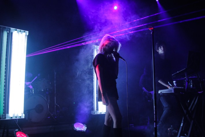 Sky Ferreira headlined a sold out show in Brooklyn last night, days after losing her voice at Stereogum's Range Life show at SXSW. (She was still sick at Wednesday night's Bowery Ballroom gig; fans apparently helped her hit the high notes.) The ascendent synth-popper tackled songs from last year's Ghost EP along with new cuts from her forthcoming debut LP. Tom Krell's How To Dress Well co-headlined. We sent Kenny Sun and his camera to brave the fog machine. Check out his pics above.