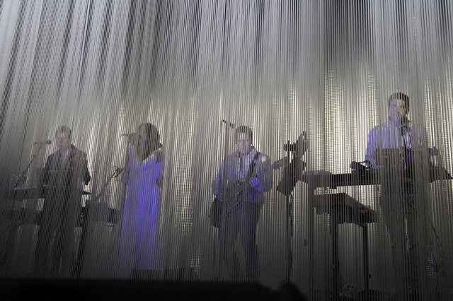 When they were done, I was faced with the hardest decision of the whole night. Do you just conclude with the incendiary violence of Grinderman, or do you stick it out for the classic Stone Roses, Earl Sweatshirt, Trent Reznor's audio-visual How to destroy angels_, or Tegan & Sara, who have such an amazing new record on their hands with Heartthrob? Like most savory things, a little bit of sweet to end the night can be delightful, so the Quinn sisters won me over. They opened by running through a bit of the album, dedicating "I Couldn't Be Your Friend" to "all the crazy ex-girlfriends and boyfriends in the audience. You psychos!" When they finally got into "Back In Your Head," I witnessed the biggest, yet still surprisingly sparse, sing-a-long I had seen the whole night. If they had played a set earlier in the day, before the molly comas, I truly believe the entire Polo Grounds would have heard the words. The girls around me, bouncing in their flower crowns, managed to drown out the nearby Stone Roses, but they sounded a bit like stray cats. You could really hear how special the Quinn sisters' voices are -- it's almost as if anyone could do it, but it's specifically theirs and hard to duplicate. Unfortunately, their unbridled loveliness was tempered by the intense, strobe-like light show. Its jitteriness could only be matched, perhaps, by the epilepsy-trigger video for Kanye West & Jay-Z's "Paris." I have only seen five seconds of that video, but it resulted in two hours of nausea. It was time for me to go and rest up for a ton of rap music, double-Dischord Ians (the Evens and the Make-Up), and the Postal Service.