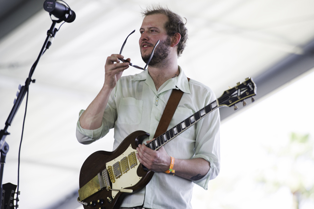 Speaking of which, after that I caught a bit of Divine Fits at the Outdoor Theater. The entire band was uniformed in black jeans and t-shirts, looking like a Rock Band. Their riffs wafted into the pre-evening haze and they quipped for the audience like old friends. Keyboardist Alex Fischel told the crowd the performances were meaningful for him because he had a seven-year stretch of attending as a fan. From where I stood, their crowd seemed sparse and mostly docile.