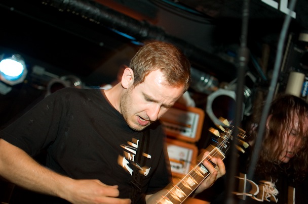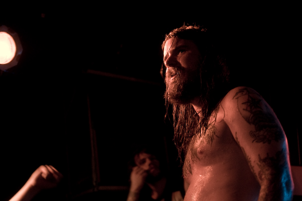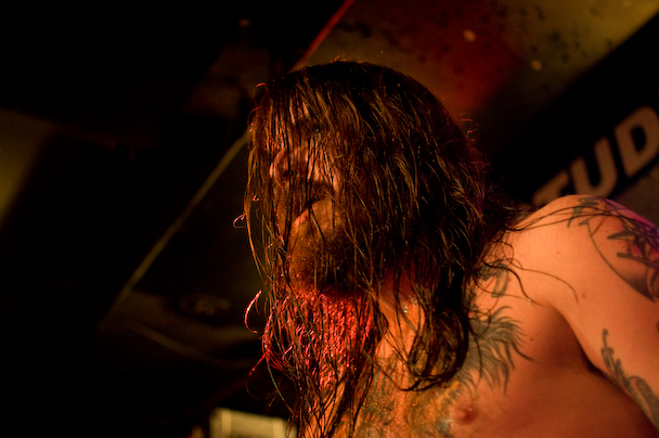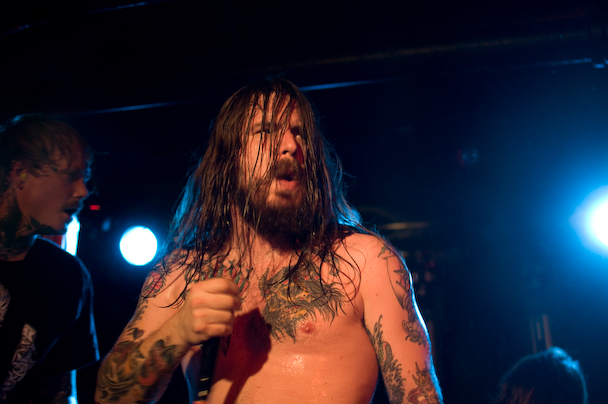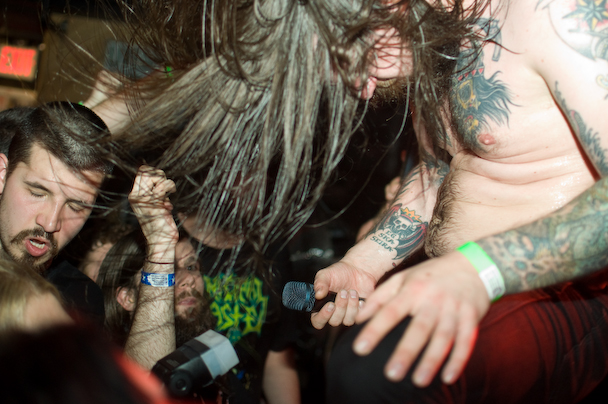 After Atlanta's sludgy and thrashy Black Tusk and Canada's punk and hardcore-inspired Cancer Bats set a distinctly raucous vibe, Kvelertak took to the stage at the Studio -- an impressive feat, given that I overheard more than a few people wondering how all six of them could fit. From the opening chords of what I think was "Spring fra livet," there would be almost no letup until an hour and change later, after singer Erlend Hjelvik dumped and spewed water and beer on the crowd, handed his mic off to a fan for a few minutes to go crowd surfing, and generally tore the place up.