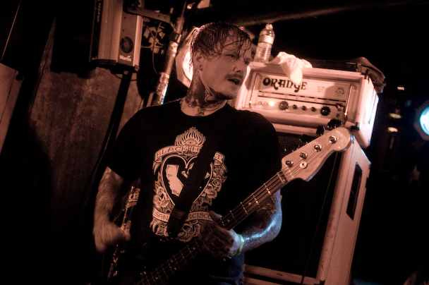 Drummer Kjetil Gjermundrod sat the tour out due to an arm injury, and former Against Me! drummer Jay Weinberg ably filled in. He played furiously and with a rabid look in his eyes, pummeling along like a man possessed. As can be expected from Kvelertak, there was plenty of team guitar work, with all three guitarists lining up for some epic riff-alongs. A roadie spent most of the show running back and forth onstage pushing floor monitors back into place as they were repeatedly hit by the crowd and the band, repairing mic stands that fell and at one point mopping the floor with paper towels that I believe he snagged from the bathroom after Hjelvik took a spill on the soaked, slippery stage.