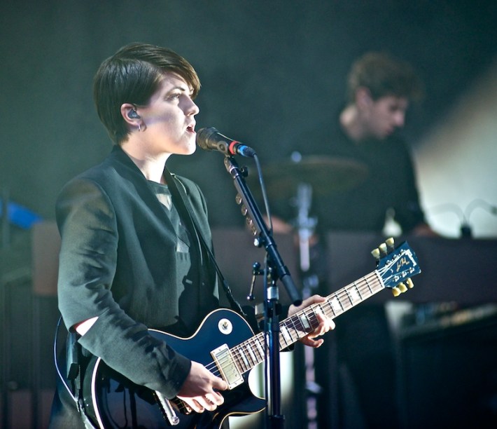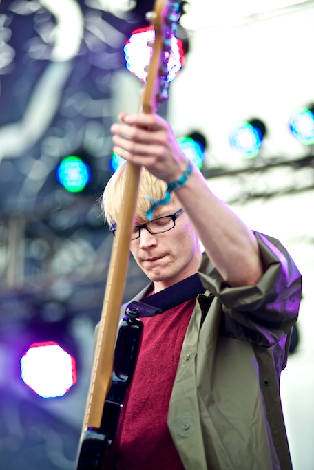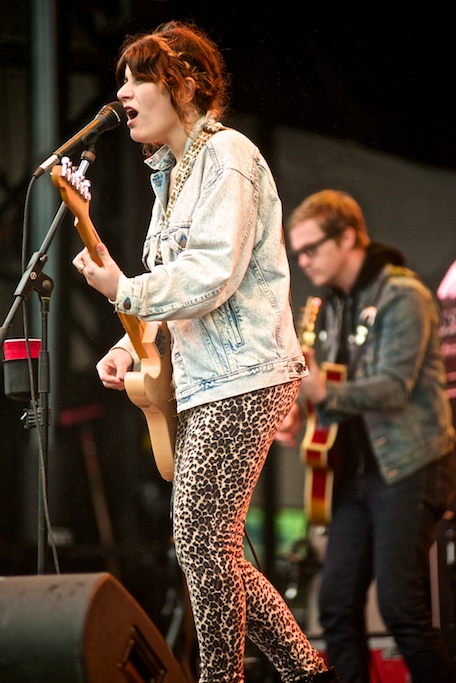 Day 2 saw clear skies, but not enough to turn the mud into anything more than brownie batter. Kings of Leon were squeezed into the main stage schedule before Guns N' Roses after having to suspend their performance on day 1 due to weather. And while there was a mud circus throughout, there were no deterrents to the day's performers, like Icona Pop, ALT-J, Dirty Projectors, and Animal Collective. Posting up at the main stage (i.e., the only spot on Randall's Island where there is concrete) was ideal, but it is especially so when the performers are Divine Fits and Cut Copy. As I learned at Coachella, Divine Fits are one of the most perfect hazy-afternoon festival bands. They hold down a stage, rock super hard, and always seem extremely happy to be doing what they do. At one point in the set, Dan Boeckner monologued about the resiliency of the Gov Ball staff and its attendees and covered Frank Ocean's "Lost." Cut Copy brought a vibrancy that matched the increasingly-present sun. Elsewhere, Azealia Banks proved she is a beastly force on stage who disrupts hip-hop norms with ferociously vouging back-up dancers. Kendrick Lamar delivered his pointed mouthfuls with aplomb, but did not provide a spectacle or any wowing guest appearances, as a NYC-based festival might beg for. Instead, he rapped his ass off on an enormous stage to a mud-encrusted audience and I think that's all we ever need him to do.