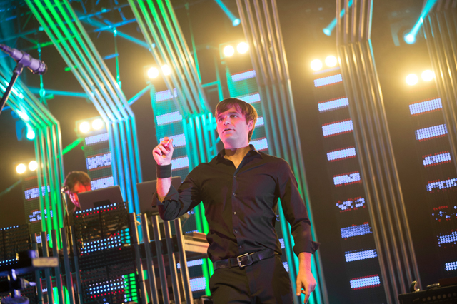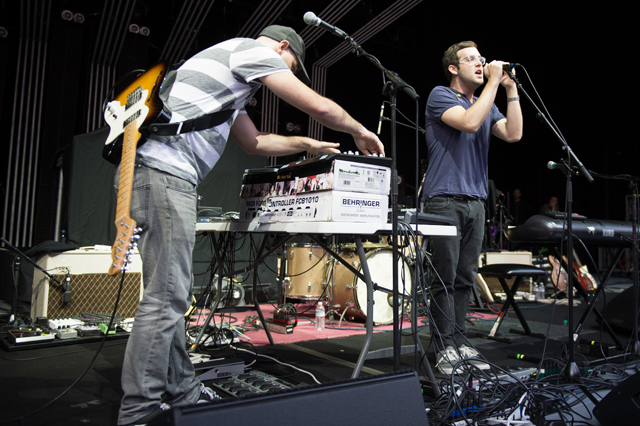 After a triumphant return to the stage back in April, the Postal Service finally wove their way to the scenic Greek Theatre in Los Angeles for two nights of nostalgia in support of the tenth anniversary of platinum debut Give Up. Having been on the road for a couple of months, the Postal Service are a well oiled touring machine. Sweetening the bill were the slashing guitars of Divine Fits who just released two new songs, "Ain't That The Way" and "Chained To Love". Baths also were on the bill unveiling a number of tracks off his latest album, Obsidian. Check out the photos in the gallery above and the setlist below, along with Some Idealistic Future, a new documentary on the band from The Creators Project (a partnership between Intel and Vice).
