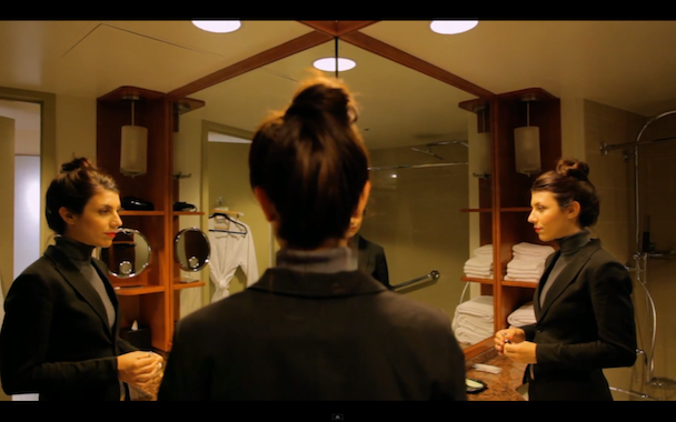 After the theatrical "In The Green Wild" music video, Julia Holter has now released a very different sort of video for "This Is A True Heart." Here Holter stars as a spy of some sort, doing a job involving a dead body, leaked information, and a very important flash drive. The entire Eugene Kotlyarenko directed video is purposely vague and played by the actors with the utmost noir-seriousness, which ends up being pretty funny. It just sends itself up more and more until a moment involving a saxophone player that is to ridiculous to ruin here. The reason why this all works though is because Kotlyarenko crafts the video exquisitely, every shot, light, and cut is perfect. It becomes something that makes you laugh while you marvel at it. Watch it below.
