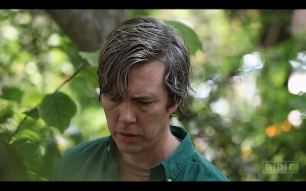Bill Callahan recently was asked to do a one of NPR's Field Recording sets in New York City. He decided on a community garden, which is just about perfect when you think about how much nature plays into the man's music. So in this intimate little garden, with cars honking and other noise coming through, Callahan plays "Small Plane," a new track off his upcoming album Dream River. It's a beautiful performance, made even more so by the moments that focus on the wildlife in the garden. Best of all, just look at the photo above -- it's such a relief to see Bill Callahan not smiling especially after the scare from a few weeks ago. Watch below.