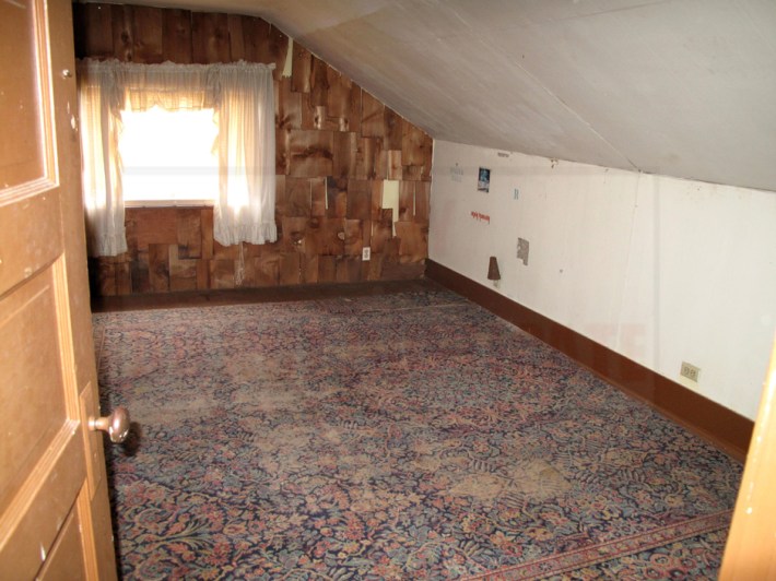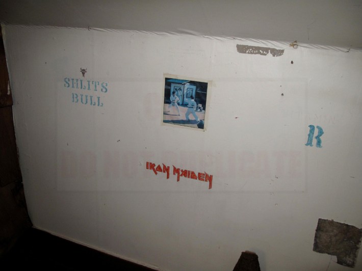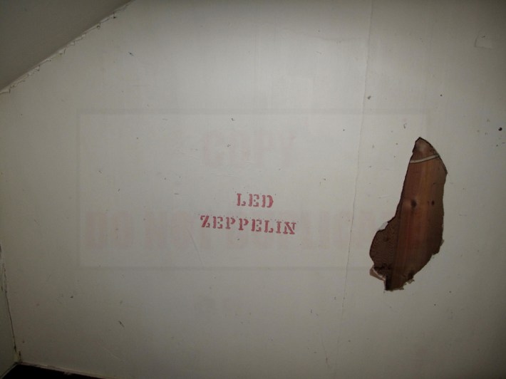 In the market for a cozy four-bedroom, 1,500-square-foot homestead in beautiful Aberdeen, Washington? The luxurious L.A./Vegas/Palm Springs real estate company the Agency has just the Craftsman-style bungalow for you! And did they mention it's Kurt Cobain's childhood abode? Of course they mentioned it -- and uploaded a slideshow full of photographs from Cobain's childhood alongside the usual images of the building, located at 1210 East First Street. Those structural shows showcase a number of of the stenciled logos young Kurt left on the walls, a collection rife with rock 'n' roll iconography (Iron Maiden, Led Zeppelin) and adolescent disaffection (the Old English 800 logo, the Chicago Bulls logo alongside the phrase "SHIT'S BULL"). There's an attached garage where Cobain and Krist Novoselic used to jam. There's also a hole in the wall from when Kurt punched it as a teen -- a gritty and authentic way to tap into the angst that would one day drive a man to blow his brains out. They're asking $500,000 for this bad boy, which seems like a lot for a house in such cruddy condition (average price for a house in Aberdeen this summer was $105,476), but, you know.