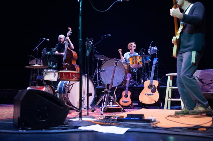 Backed by bassist Sebastian Steinberg and drummer Amy Wood, she and Mills added some notes of fury to "Regret," and turned "Anything We Want" into a minimalist epic. Apple even seemed to relish in taking a supporting role as well, backing up Mills' originals on piano or pounding on a field drum with her fist.