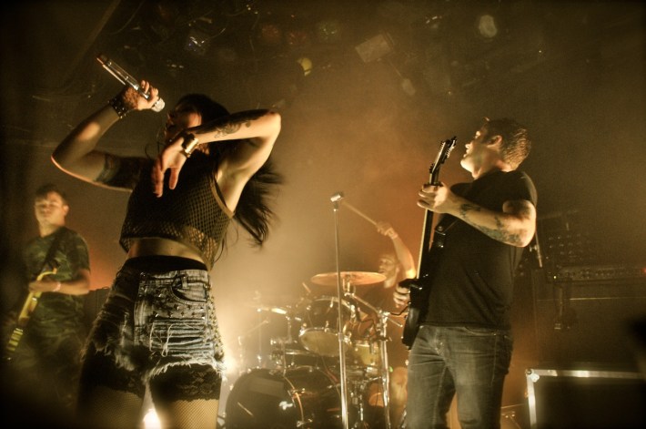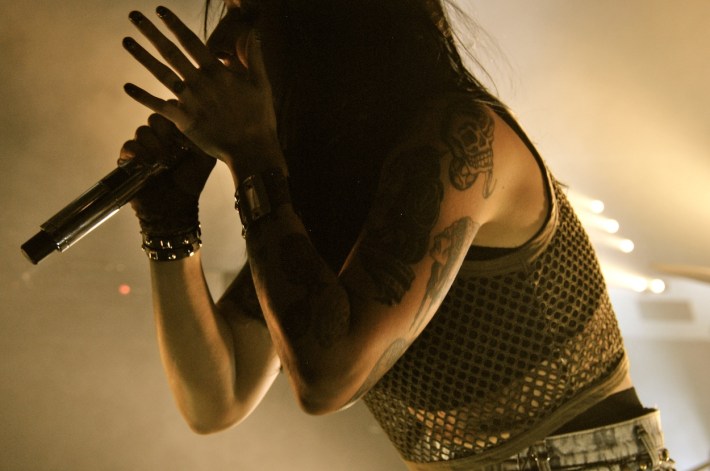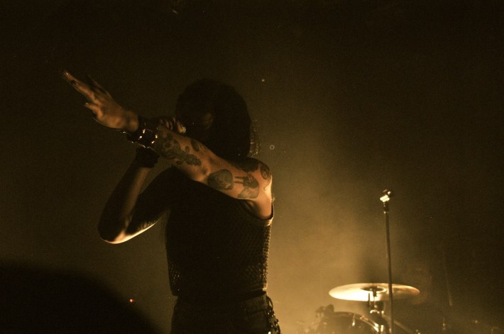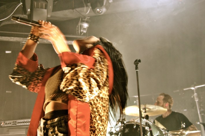 Krauss wore Keds last night, a casual reminder of the blood-splattered sneakers that christened the Reign Of Terror album cover. After watching Sleigh Bells' performance, that image stands out as a lot less gimmicky; Miller and his band played with such unyielding stamina that at points, it seemed almost painful. But their efforts take a while to recognize when they're in the shadow of Krauss' magnetism. Sleigh Bells wasn't always Krauss' band, but it has always been her show.