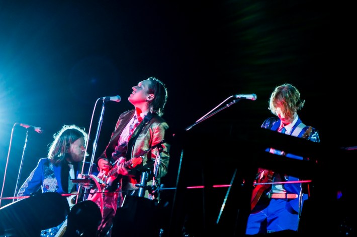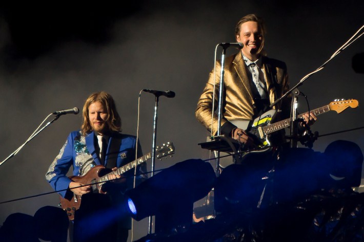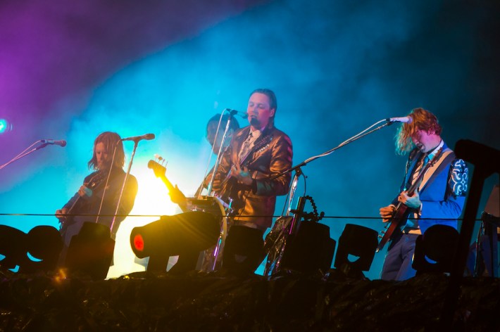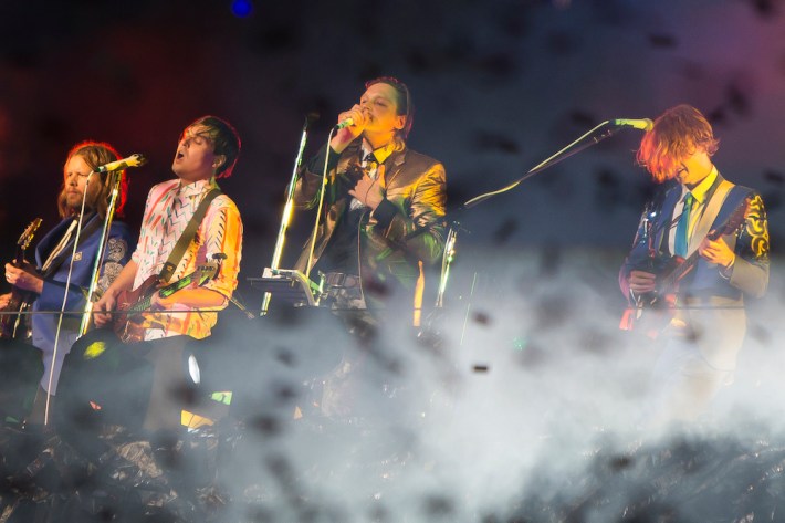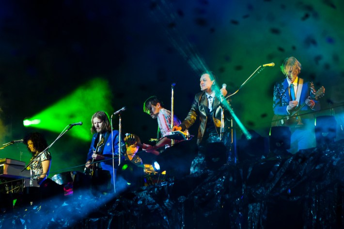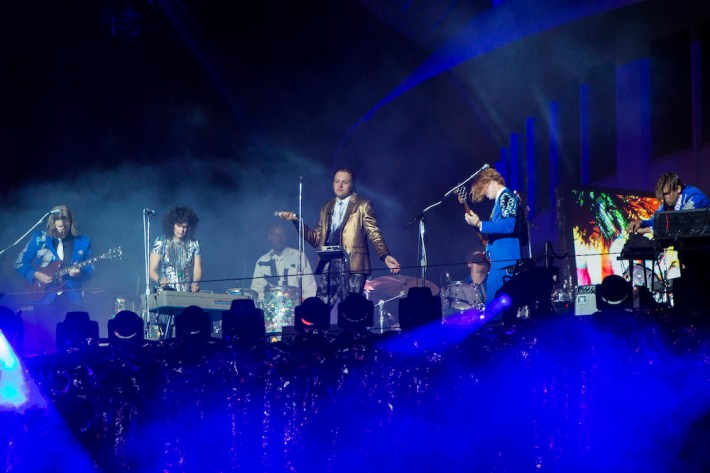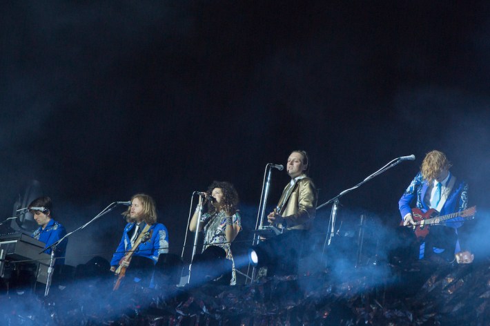 So if a concert lacks intimacy, and the audience is disengaged, the Arcade Fire could still probably make it work, and on the most basic levels, they did, as people didn't have a bad time. But it was their ability to surprise in concert that was most missed, the element that has has made their transition from clubs to festival headliners acceptable for all, as they can still make a massive group unite and feel worthwhile. Rumors circulated that Win might end the concert by coming down from his tower and performing in the crowd, for old time's sake. But that wouldn't happen, the band played essentially the same songs they have at every other show they've played recently, omitting two of Reflektor's best tracks in "Porno" and "Awful Sound." During the brief encore, after Butler joked that they'd "shut up and play the hits" -- in a nod to their producer -- they ended up playing just one. And then they left.