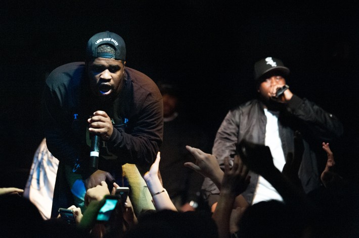 2013 has been a breakout year on different scales for Ferg and his buddy A$AP Rocky. It's a long leap from internet star to radio star, but that Pretty Motherfucker made the transition with a little help from his friends -- namely new buddies Drake, 2 Chainz, and Kendrick Lamar, who helped "Fuckin' Problems" become a bona fide smash. Rocky hasn't abandoned old pal Ferg, as evidenced by his comically awkward Trap Lord shout-out alongside Jason Collins at the VMAs, but he has left Ferg to shepherd the A$AP Mob swarm that's been sweeping the country in recent years. That's a responsibility Ferg can handle. Trap Lord heralded Ferg's own ascendance to the level of name-brand online celebrity Rocky's been rocking ever since "Purple Swag," and it's well deserved. If the album wasn't already sufficient proof, consider this tour official confirmation that Ferg is plenty capable of commanding the stage.