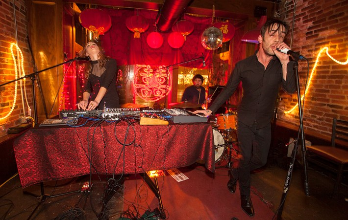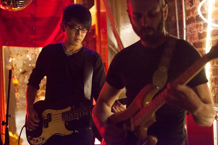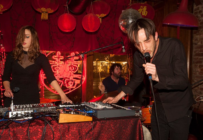 That's how Brown ended up with Boeckner and their bandmate Devojka crashing at his home in Columbus, preparing to record a debut EP in his basement, and playing a tiny club show Thursday night at the very small, very dark Double Happiness. Like I said, it's weird how these things play out.