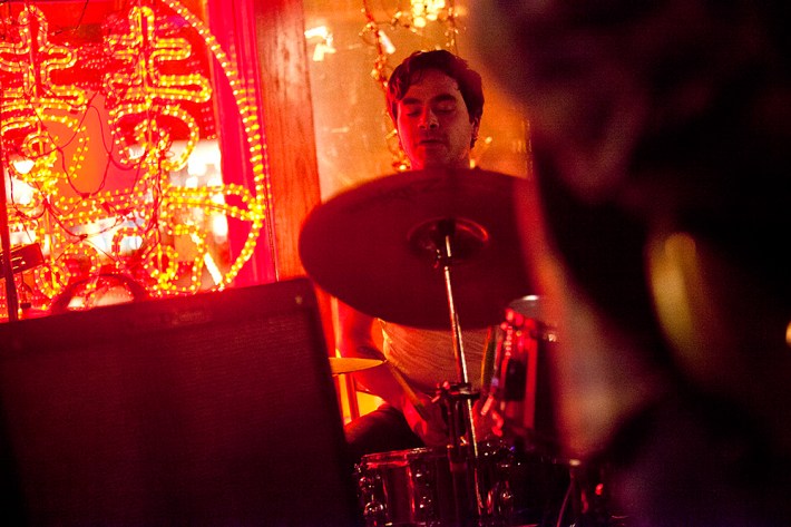 Connections, one of our 40 Best New Bands Of 2013, began the night with an almost perfect set, one of those opening sets you can't ignore. They began with "Tough City" (which you can and should download here), a frenetic conglomeration of so many hooks and so much "Woop!" From there it was one basement pop rager after another, every instrument weaponized, frontman Kevin Elliott palpitating with combustive force that could only be vanquished by occasionally battering an otherwise superfluous tom and snare. His brother Adam, late of Times New Viking, was handling primary drum duties, and on the final stretch of songs in particular his slapdash bombast served as a reminder of the indie-pop bottle rockets his previous project used to launch.