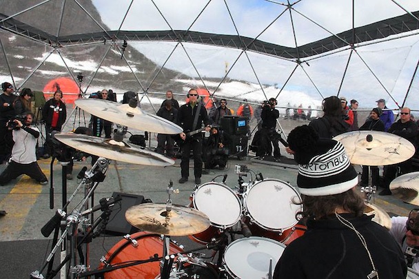 I saw a lot of great shows in 2013 but far and away the best show I saw was Metallica at Harlem's Apollo Theater -- a legendary and beautiful space roughly 1/20 the size of the rooms usually played by Metallica. I wasn't at the band's show in Antarctica last night, but I'd imagine it would have given the Apollo gig a run for its money. The band played a 10-song set in a domed space for a tiny group of people, and travel/hassle/bitter cold aside, it seems like it was a total blast. Said the band of the show: