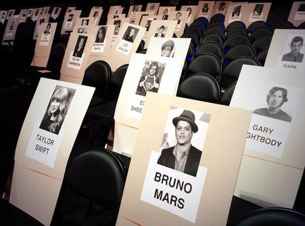 It's time for Stereogum & Videogum's Grammys Comment Party, a lively discussion of the Recording Academy's recognition of outstanding achievement by Macklemore & Ryan Lewis. You probably heard that this year's ceremony will stage on-air nuptials of 34 couples during the hip-hop duo's performance of marriage-equality anthem "Same Love." Queen Latifah will officiate and Madonna will sing the chorus. In other words, your dream wedding, complete with thousands of people making fun of it on Twitter. And there will be plenty of other notable live pairings where that came from: Kendrick Lamar x Imagine Dragons; Jay Z x Beyoncé; Robin Thicke x Chicago; Metallica x Lang Lang; Daft Punk (in white helmets!) x Stevie Wonder; and NIN x QOTSA x Dave Grohl x Lindsey Buckingham closing the show. There's the In Memoriam segment, honoring artists who died in 2013, which Lou Reed should win handily (or is that not a contest?). The Beatles will receive a Lifetime Achievement Award (how has that not happened already?). And someone — possibly Sara Bareilles, but not Kanye West — will take home Album Of The Year. LL Cool J hosts again so you'll need some liquid courage to make it through the ordeal. We asked Kelly Videogum to share Grammys 2014 Drinking Game rules for those of you who want to make a sport of it; scroll down for that. We'll be updating the site in real time with GIFs, tweets, videos, and a winners list in addition to mixing it up with all of you in the comments. The show starts at 8PM EST, but the red carpet is happening now. Let's do this, we're up all night for good fun, the ceiling can't hold us, etc.