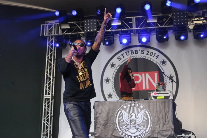 Future shows tend to be orgies of hits, and his set yesterday, headlining the SPIN party at Stubb's, was mostly that: A thunderous "Bugatti," an even more thunderous "Same Damn Time," cameos from B.o.B. and Bun B. But he also did a couple of new songs: The intro track to his forthcoming album Honest and "Good Morning," another song that didn't make the album at all. Talking to the crowd, Future said that he'd been working on the song with producer Detail and that it was one of his favorites. But Detail also worked on Beyoncé's "Drunk In Love," and there were serious parallels between both songs. Maybe Details used the same beat for both songs, or maybe the two just sounded too similar. Future only said that "Drunk In Love" came along and stole the song's thunder, not that the song was the original "Drunk In Love," though maybe it's that, too. He also said that he'd never performed the song before and that he'll probably never do it again, so unless it leaks, this is presumably our only chance to hear it.