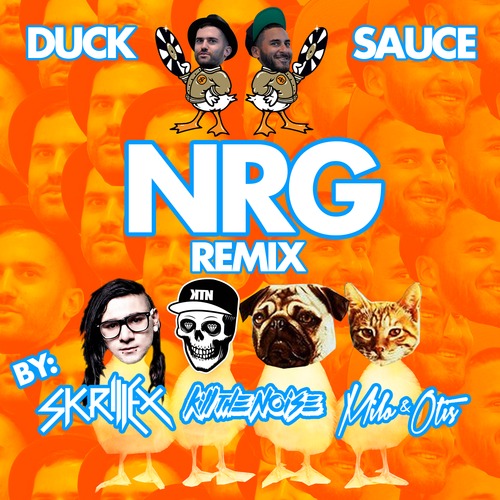 Late last month we got details on superstar DJ duo Duck Sauce's debut album, Quack. One of the album's 12 tracks is "NRG," and today a wildly colorful remix of that song appeared courtesy of even more superstar DJs, Skrillex, Kill The Noise, and Milo & Otis. It's an exceptionally fun way to turn Monday into an extended weekend (hey, it's St. Patrick's day, right?), with elements of disco, arena rock, prog, '70s and '80s TV theme song music, and latter-day EDM elbowing each other out of the way to get in the DayGlo spotlight. Listening below is highly recommended.