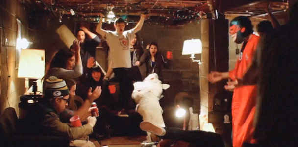 Time-lapse videos are pretty common and gimmicky, but Jeremy Schaulin-Rioux has made one for Band To Watch PUP's world-beating single "Lionheart" that makes perfect sense. In a single sped-up shot, the still camera captures over 4 hours of a drunken basement party. Frontman Stefan Babcock plays "Edward Forty Hands" for most of it, beers are shotgunned, bongs are hit, kegs stands are conquered, and the night ends in fireworks and puke. It condenses an entire night of excitement and joy into an impossibly short runtime, which is pretty much what "Lionheart" does, too. Watch the video below.