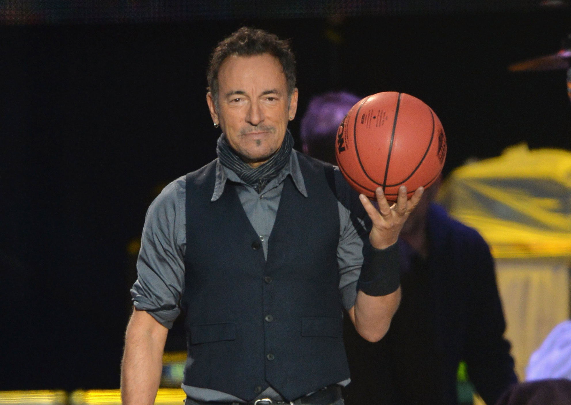 Bruce Springsteen performed at the March Madness Music Festival in Dallas earlier tonight. After taking the stage with the E Street Band (which currently includes Tom Morello) he asked, "This has something to do with basketball, am I right?" He was right, which is good because he was holding a basketball. Then, with a guitar tech dressed as the referee, Springsteen and Nils Lofgren did a jump ball before the band launched into a cover of Van Halen's "Jump." Watch the whole scene below.