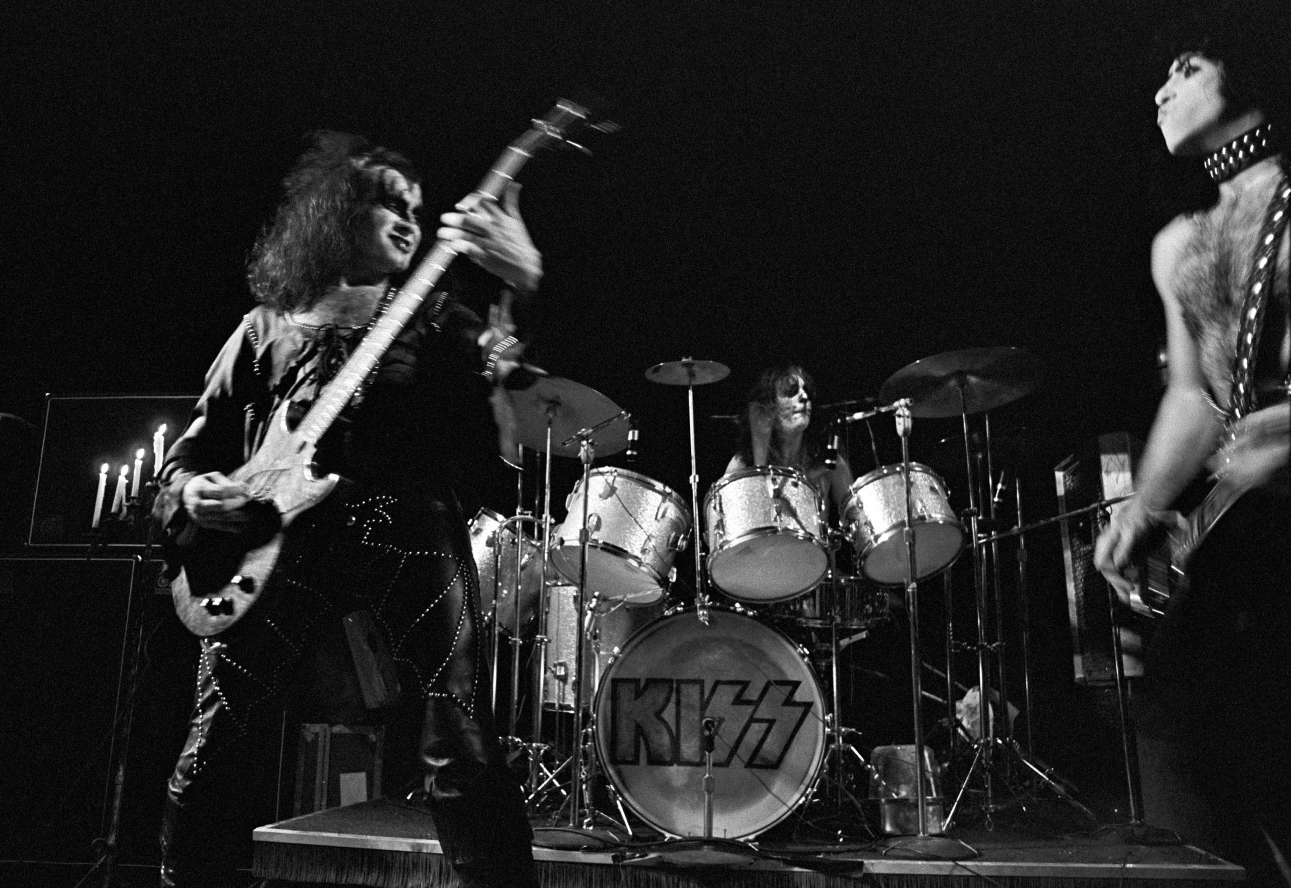 The members of Kiss are scheduled to appear together Thursday at a Rock And Roll Hall Of Fame roundtable in honor of their induction. That event might be ridiculously awkward now that Paul Stanley (far right, guitar), in a memoir released just today, has accused bandmates Ace Frehley (not pictured) and Peter Criss (center, drums) of anti-Semitism. According to The New York Post, in Stanley's book Face The Music: A Life Exposed he accuses Frehley of owning Nazi memorabilia and says Criss used to mock the waiters at Chinese restaurants. Stanley's book also suggests that Criss and Frehley's prejudice against Jews fueled resentment toward Stanley and Gene Simmons (left, bass), both of whom are Jewish. In a separate interview with The Post, Stanley affirmed that he believes Frehley and Criss are anti-Semitic. Here's an excerpt from that story: