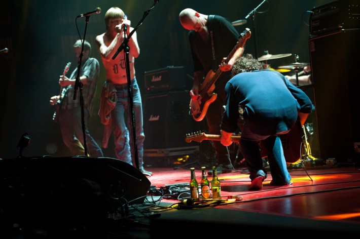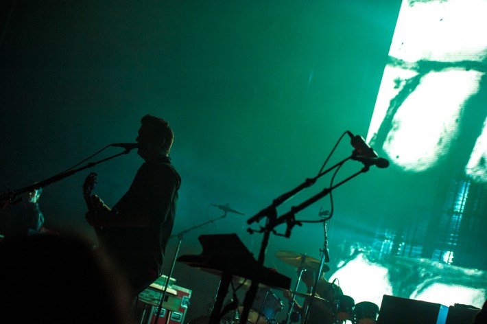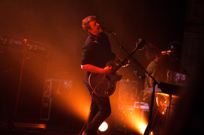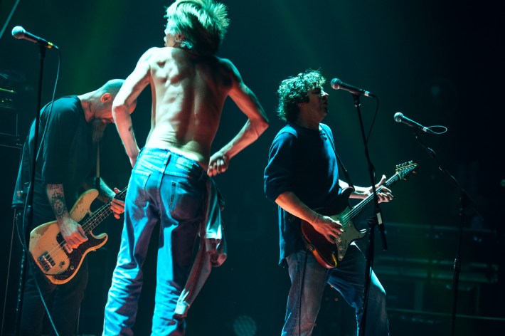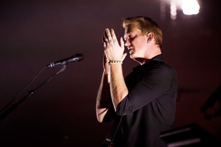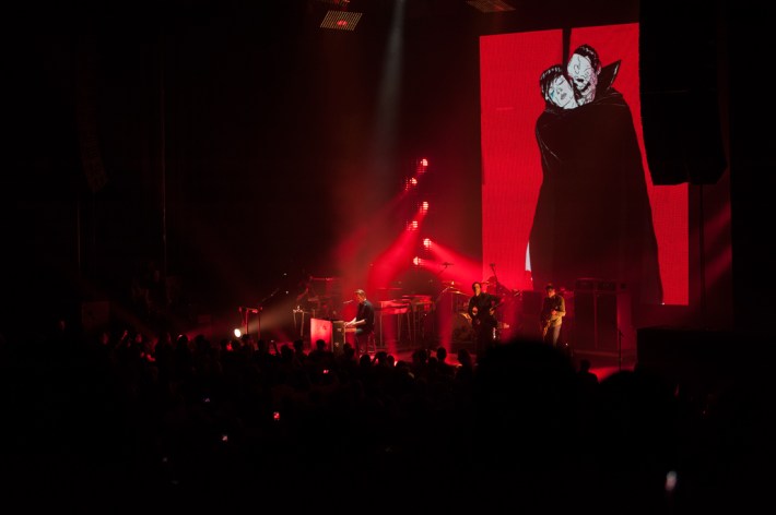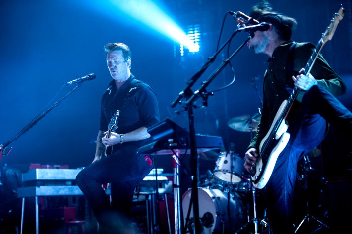 Queens Of The Stone Age put on a killer live show -- in fact, we just listed them as one of the best parts of Coachella last week. Last night Josh Homme and company stopped by the Keller Auditorium in Portland to play a massive 20-plus-song setlist, touching on many tracks from their recent album Like Clockwork -- and including a surprise guest: former QOTSA bassist Nick Oliveri, who joined the band on stage for the first time since being fired 10 years ago. The show opened with Moistboyz, once the side project of Dean Ween, but in light of Ween's breakup and the shedding of his stage name, now the main project of Mickey Melchiondo; Oliveri currently serves as its touring bassist. We sent our photographer Colin McLaughlin to capture the performance. Check out the gallery above and watch a fan-filmed video of Oliveri once again performing live with Queens Of The Stone Age below.