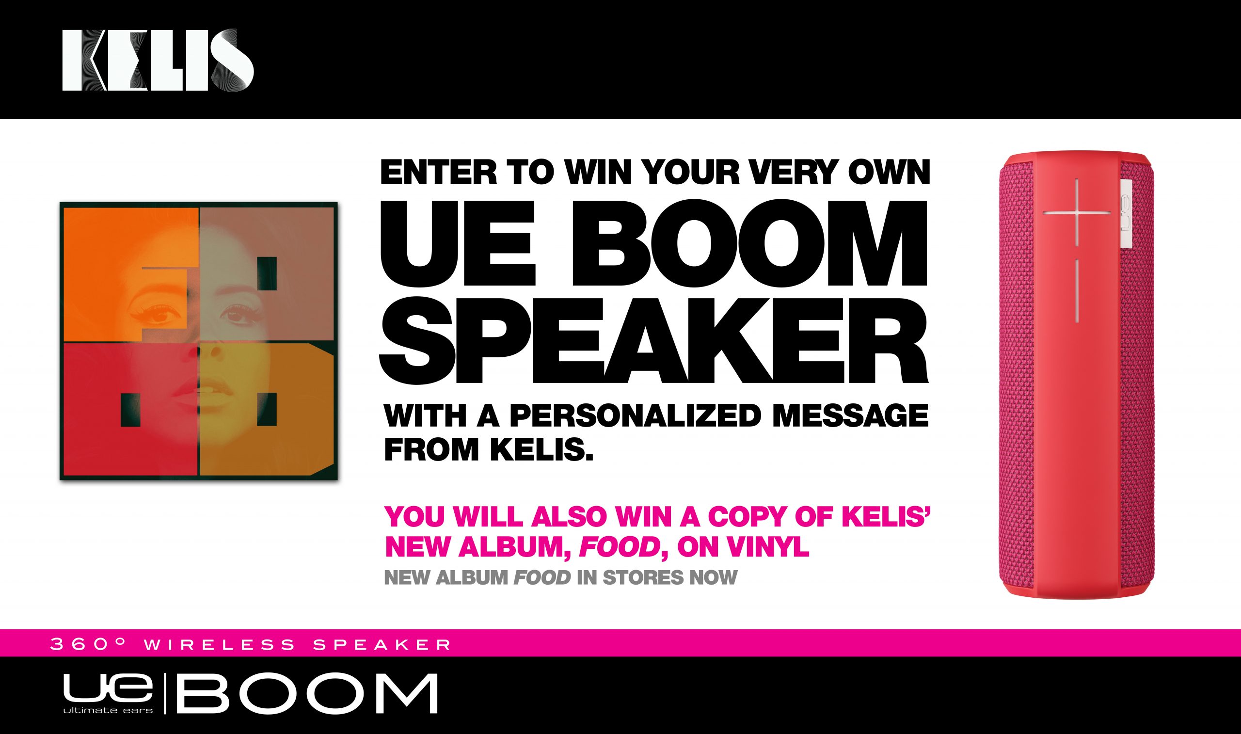 Today marks the release of Food, the sleek, stylish retro-futuristic soul platter from R&B adventurer Kelis and producer Dave Sitek of TV On The Radio. In honor of the occasion, we're giving away a UE BOOM 360-degree wireless bluetooth speaker with a recorded greeting from Kelis -- a $199 value -- plus a copy of the album on vinyl. Tasty enough for ya?