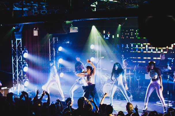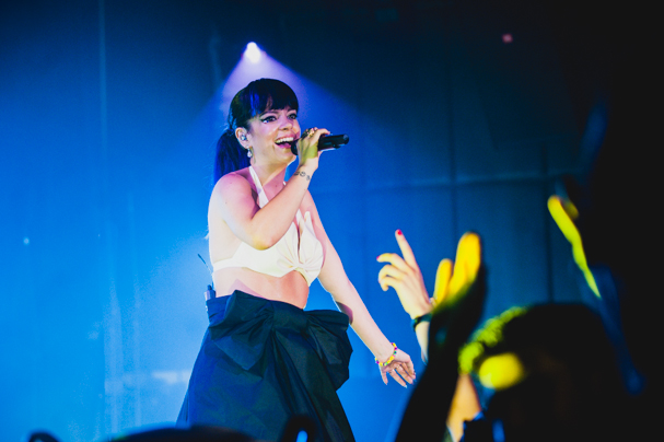 Last night Lily Allen played her first show in the United States since 2009. The controversy spawned by her new material didn't stop her from selling out the Highline Ballroom in Manhattan, and being hospitalized for food poisoning didn't keep her from delivering a strong performance. We sent our photographer Luis Ruiz out to capture the entire night in photos. Check out the gallery above.