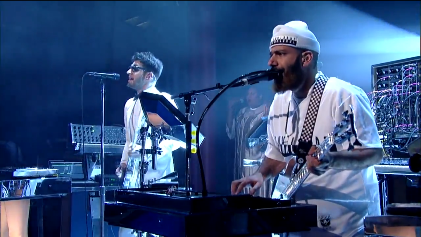 Chromeo's White Women is now out and yesterday the Canadian synth-pop duo hit The Late Show in advance of two shows at NYC's Terminal 5. Dave 1 and P-Thugg did their spring jam "Jealous (I Ain't With It)" with a female choir and a fog machine, and it looked and sounded like this: