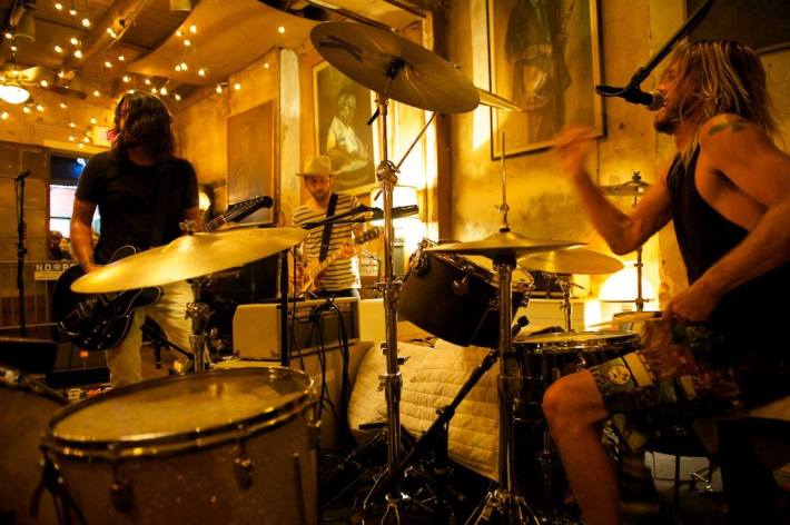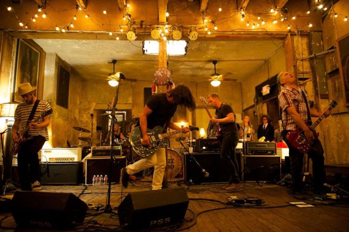 A few days ago, the Foo Fighters shared details about their upcoming new album: it's being recorded in eight different cities at famous studios and with musicians that are culturally important to wherever they are. One of those cities is New Orleans, where the band has been recording at Preservation Hall for the past couple days. Last night, they tweeted a picture of Dave Grohl and hinted that they might be performing, and NOLA showed up in droves -- a big enough crowd came that police eventually shut down the street that the Hall is on. Instead of letting people into the venue, they played out towards the street. Only a select few invited guests were allowed inside which included Win Butler, Régine Chassagne, and Anderson Cooper (who is recording a Foo Fighters profile for 60 Minutes). Also present was the camera crew for Dave Grohl's new HBO show. There's a really detailed play-by-play over at The Times-Picayune and you can see some shaky fan videos below.