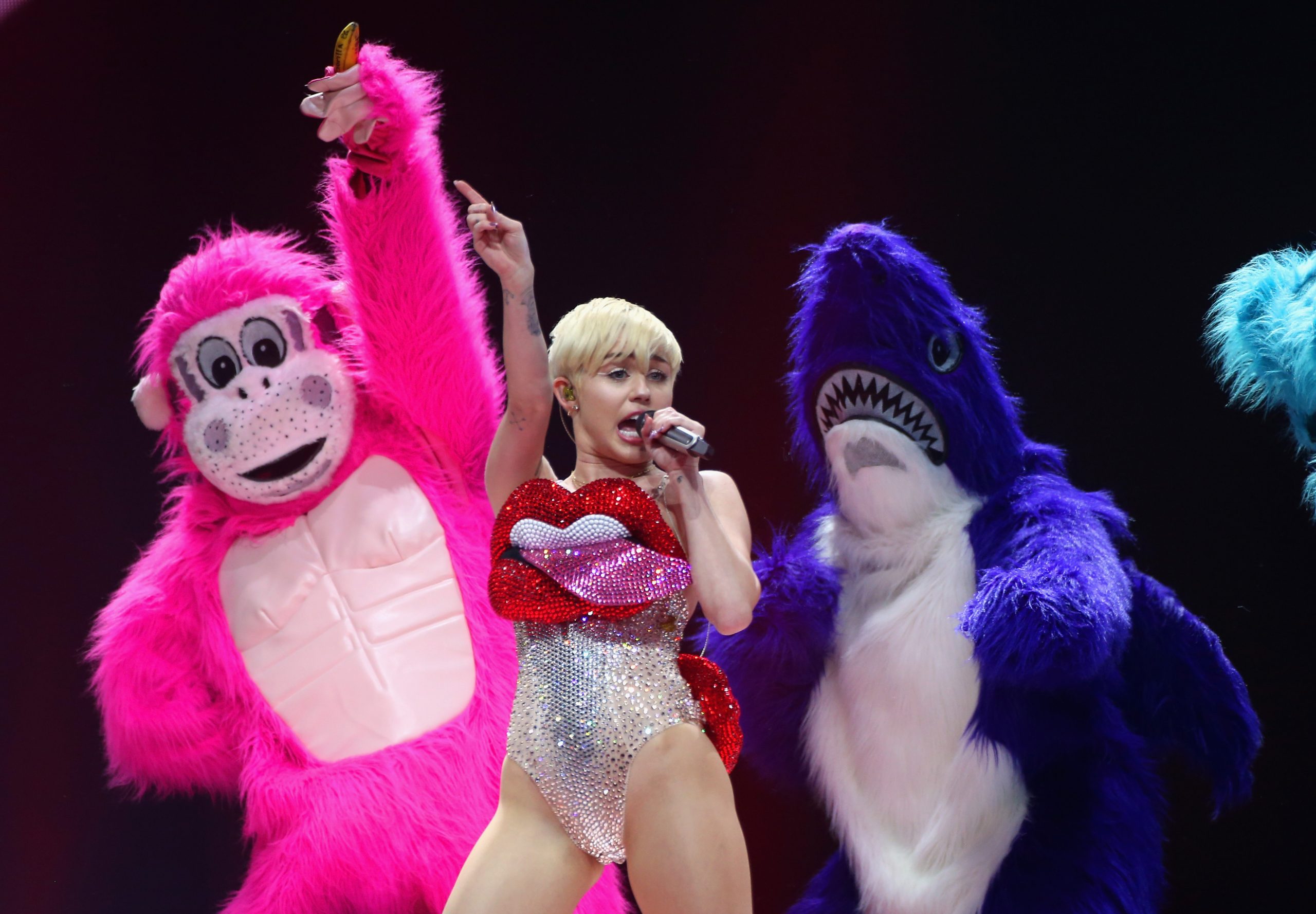 [Photo of Cyrus at London's O2 Arena by Simone Joyner/Getty.]