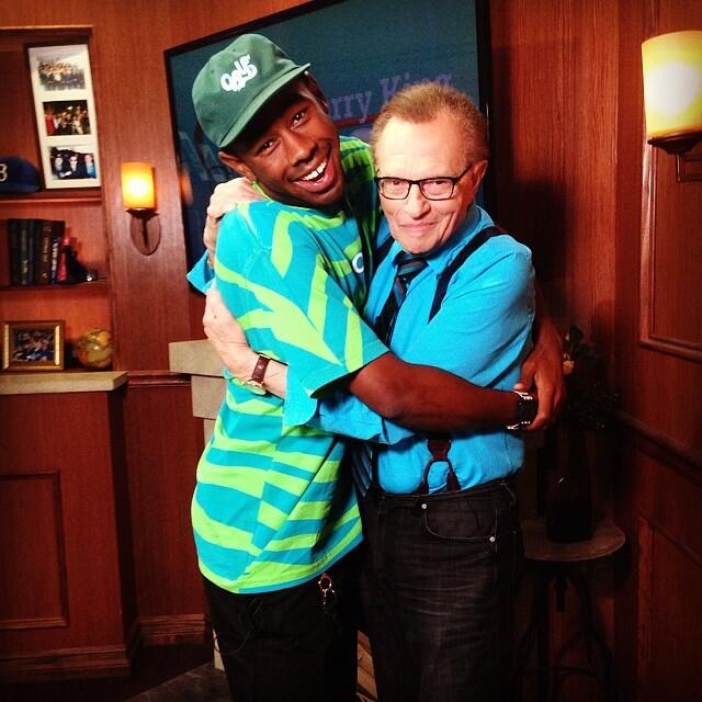 Today Larry King Now (a web show on Hulu, apparently) featured an interview with Odd Future leader Tyler, The Creator. It's an extremely interesting video where Tyler talks openly and honestly about where he came from and his ambitions for the future. He gets into his growing disinterest in merely being a rapper, his hopes of someday being compared to Wes Anderson and Quentin Tarantino, and his love for Jennifer Lawrence ("I love Jennifer Lawrence. If you watching this, leave the nigga you with!") and all girls with freckles. If you're an Odd Future fan or perhaps have conflicted feelings about Tyler, I can't recommend the interview enough.